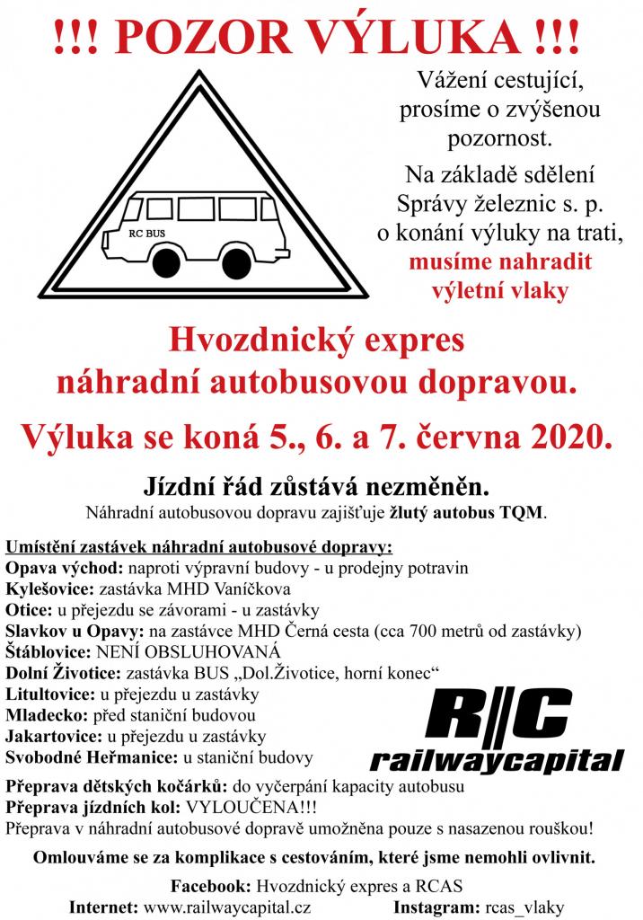 Náhradní autobusovou dopravu zajišťuje žlutý autobus TQM.