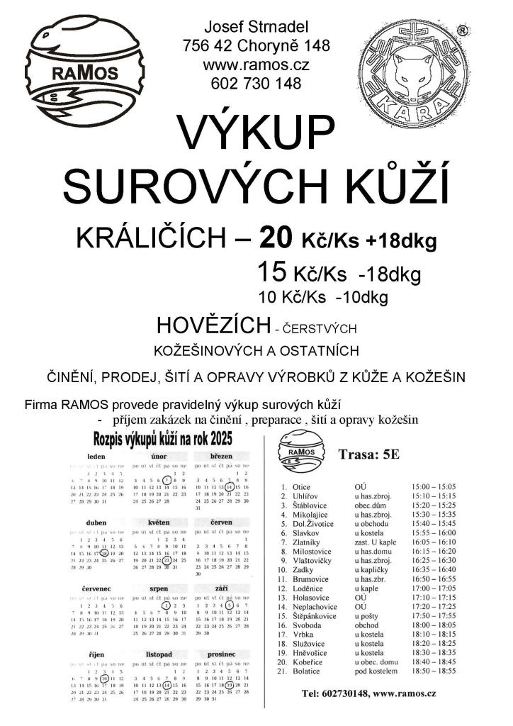 Rozpis výkupů kůží na rok 2025