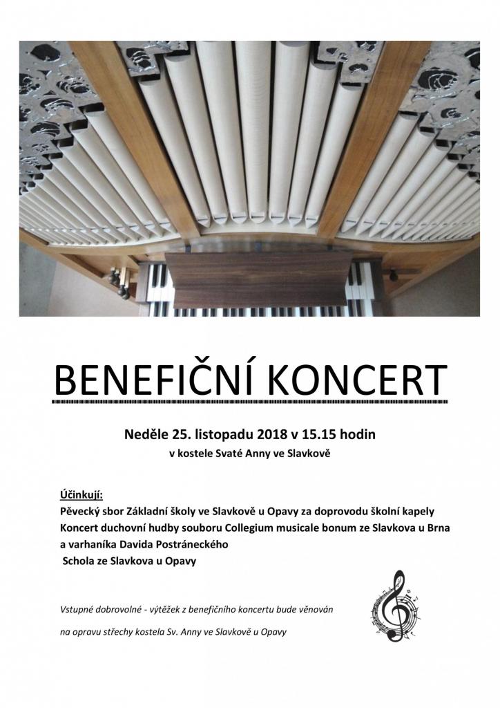 Vstupné dobrovolné - výtěžek z benefičního koncertu bude věnován na opravu střechy kostela Sv. Anny ve Slavkově.