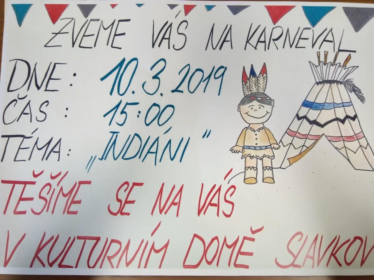 Zveme Vás na karneval dne: 10. 3. 2019, čas: 15:00, téma: Indiáni.