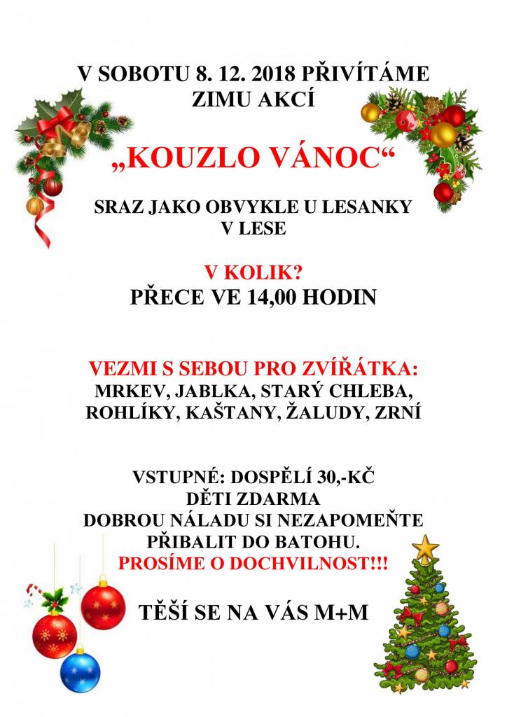 V sobotu 8. 12. 2018 přivítáme zimu akcí "Kouzlo Vánoc".