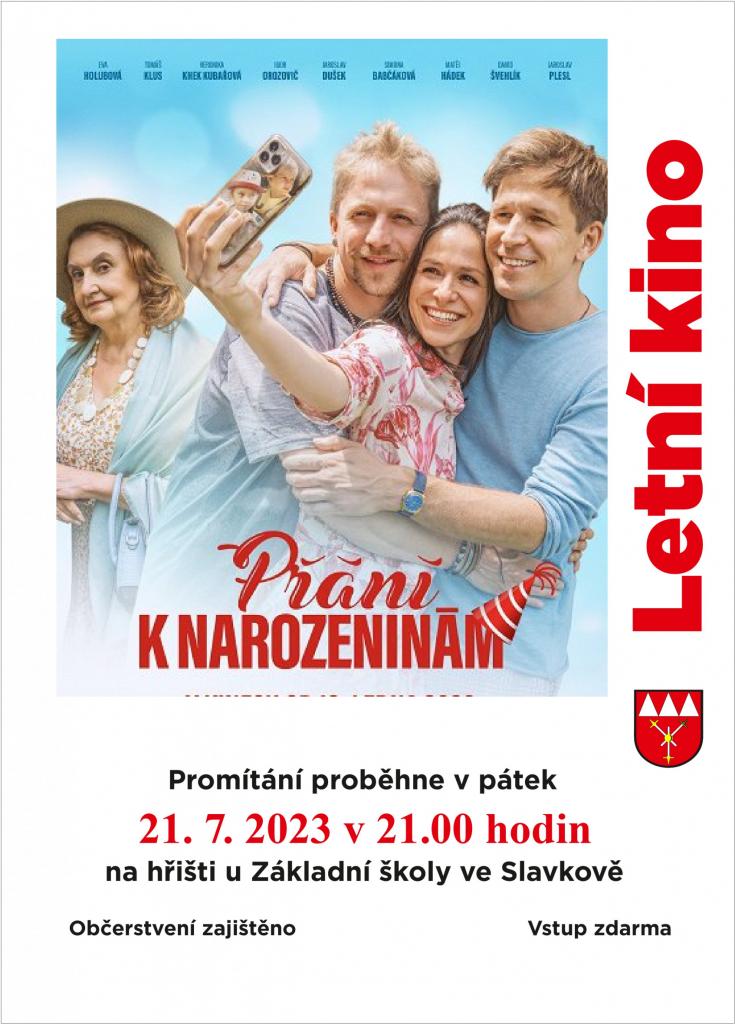 Promítání filmu "Přání k narozeninám" proběhne v pátek 21. 7. 2023 ve 21 hodin na hřišti u Základní školy ve Slavkově.