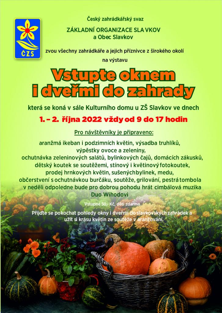 Český zahrádkářský svaz, Základní organizace Slavkov a obec Slavkov zvou všechny zahrádkáře a jejich příznivce z širokého okolí na výstavu