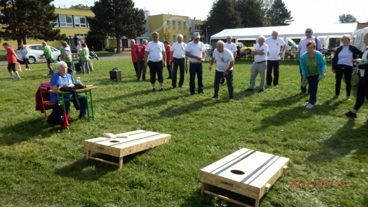 Soutěže se za krásného slunečného počasí zúčastnilo 104 seniorů v 26 dužstvech. Soutěžilo se v 7. disciplínách: košíková, šipky, floorball, cornhole, míček, bollobal a kroužky.